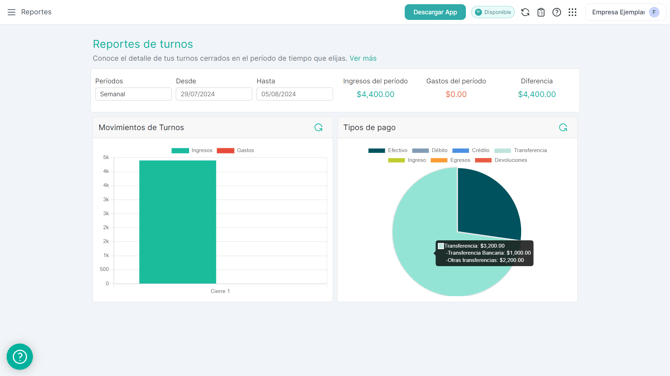 Cuando hagas el cierre de turno, podrás ver en detalle los pagos realizados, incluyendo los métodos de pago utilizados. Observa: