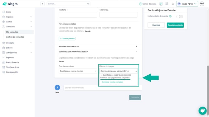 - Cuentas por pagar (Pasivo corriente): las cuentas con este uso estarán disponibles para asociarlas al momento de crear o editar tus contactos. Observa: